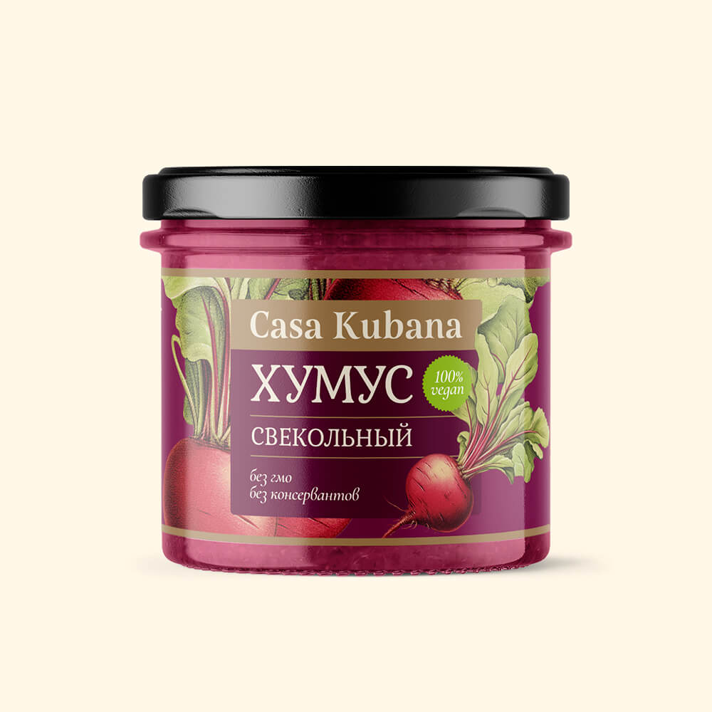 Вода питьевая, масло подсолнечное рафинированное дезодорированное, свекла пюре, нут, свекла сушеная, кунжутная паста, сок лимона, соль морская пищевая, базилик сушеный, кориандр молотый, чеснок сушеный, перец чёрный молотый, кумин молотый.