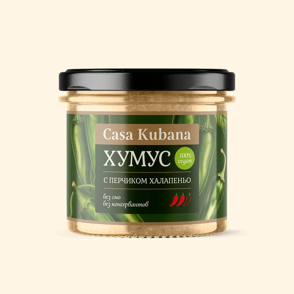 Нут, вода питьевая, масло подсолнечное рафинированное дезодорированное, тахини (кунжутная паста), перец халапеньо маринованный (перец халапеньо, вода питьевая, соль пищевая, уксус винный), экстракт дрожжевой, соль морская пищевая, чеснок сушеный, загуститель (камедь гуаровая), кумин, кинза сушёная, перец красный острый сушёный.